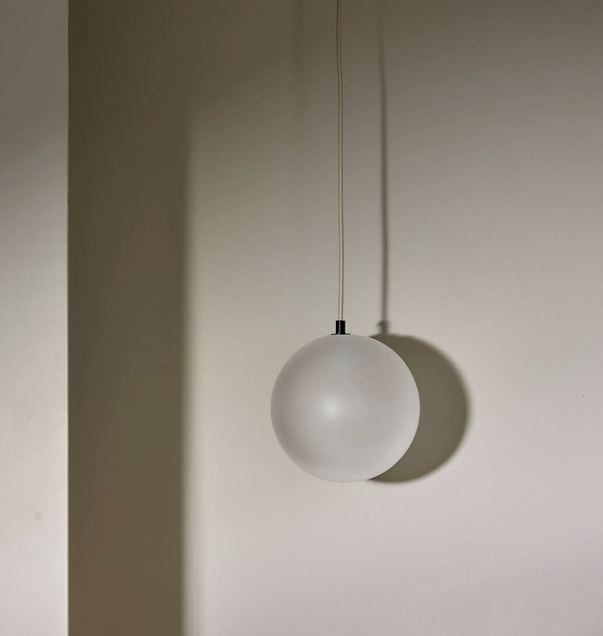 Description. minimalist glass sphere pendant, available in a range of glass and metal finishes, with either a solid rod or fabric flex cord.